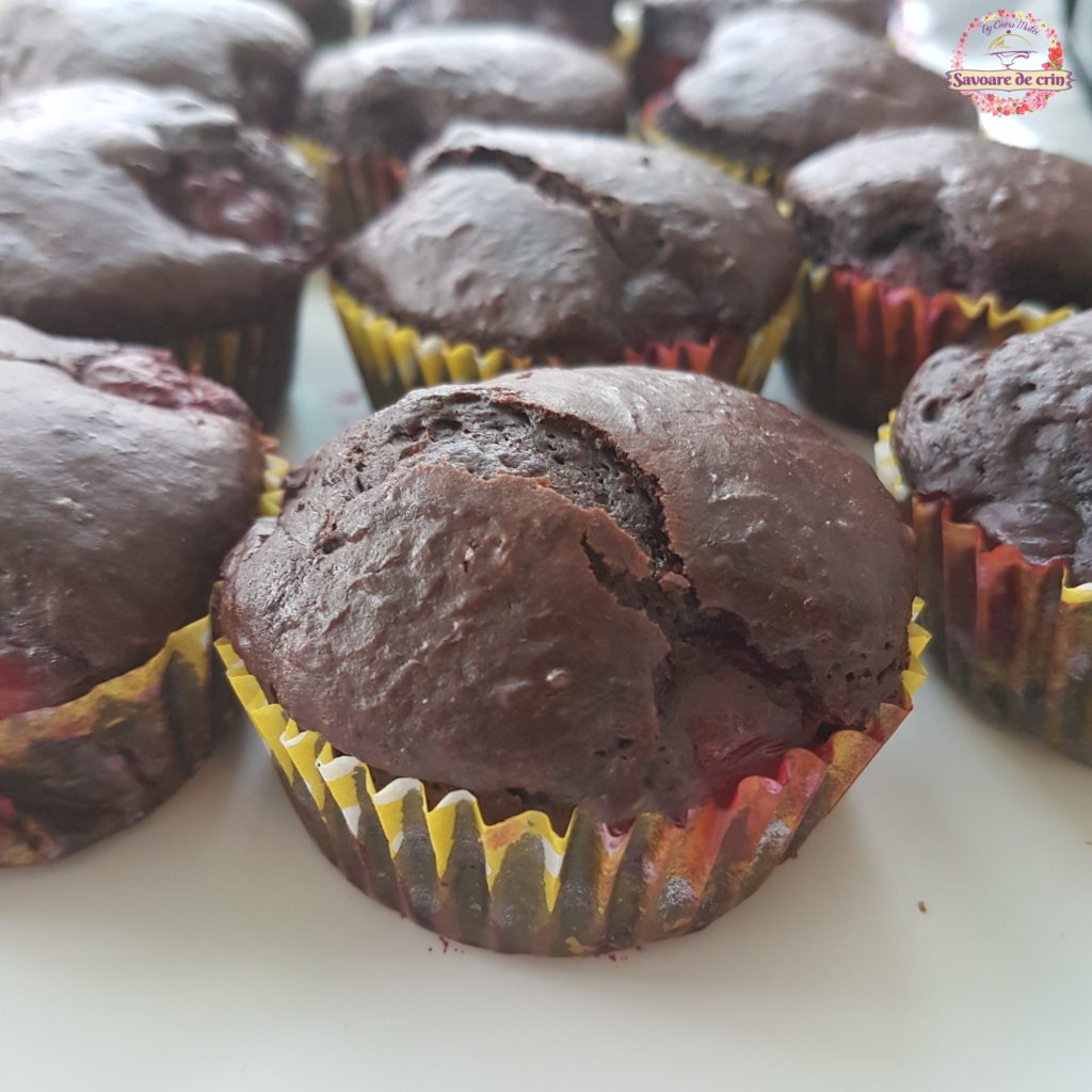 Brioșe pufoase cu ciocolată și vișine