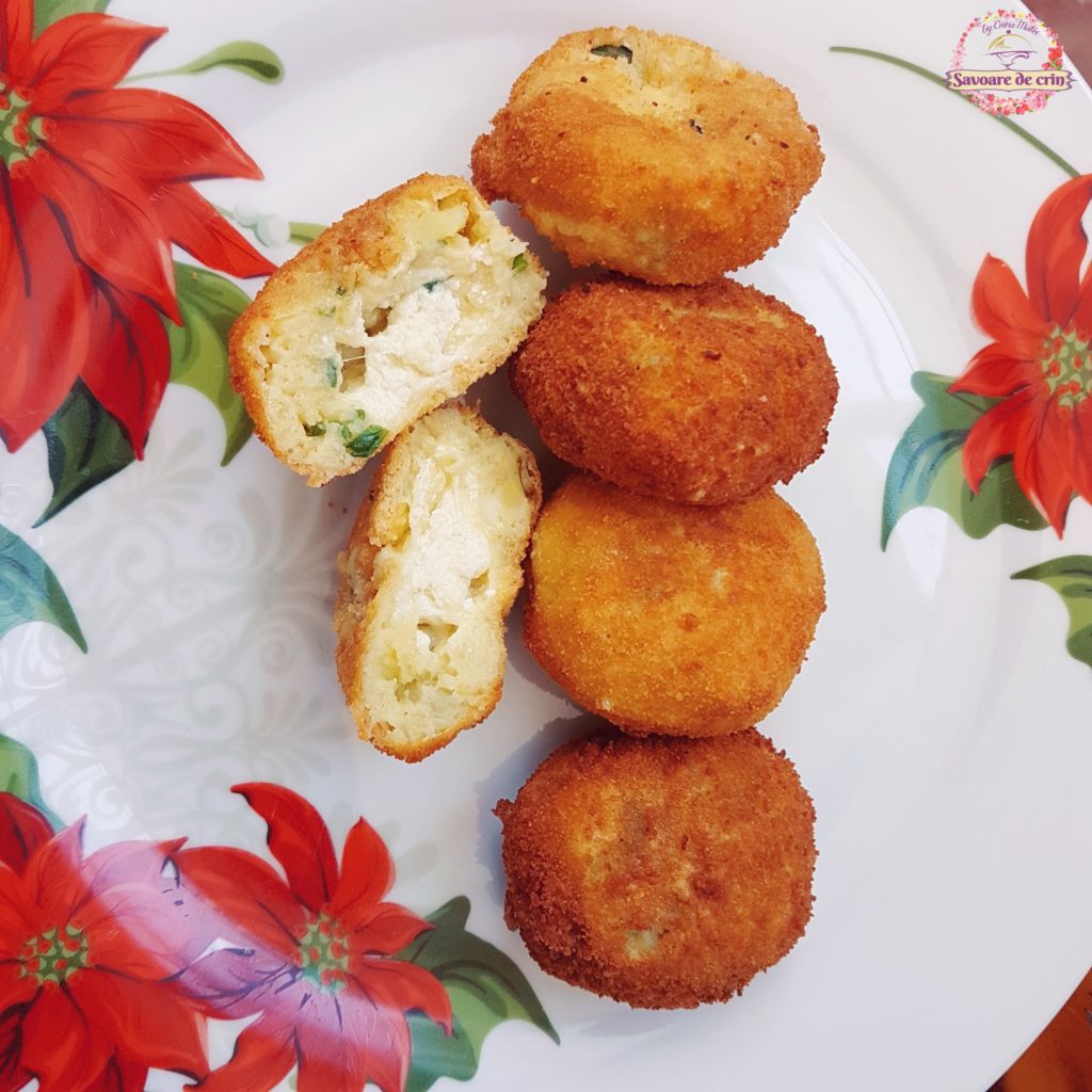 Chifteluțe de cartofi cu ceapă verde, umplute cu brânză de burduf