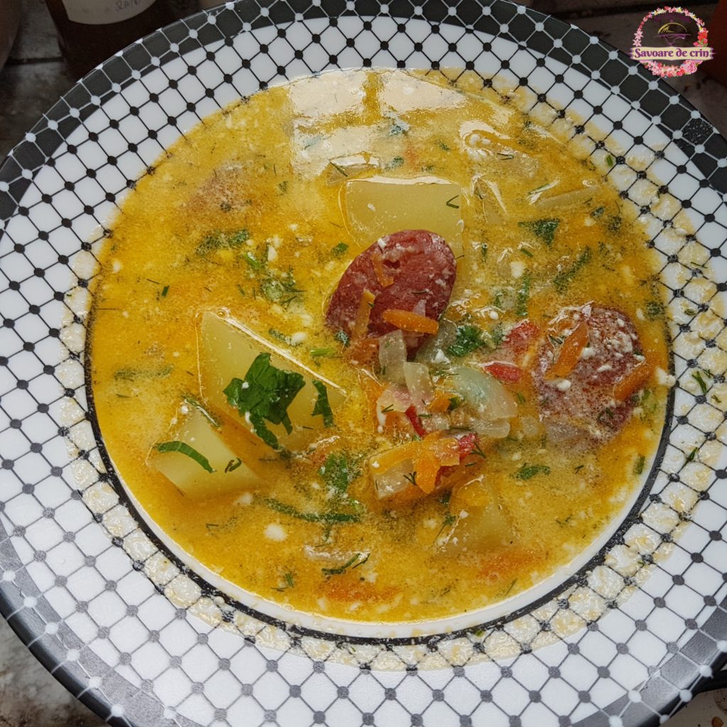 Ciorbă de cartofi cu cârnați de casa afumați