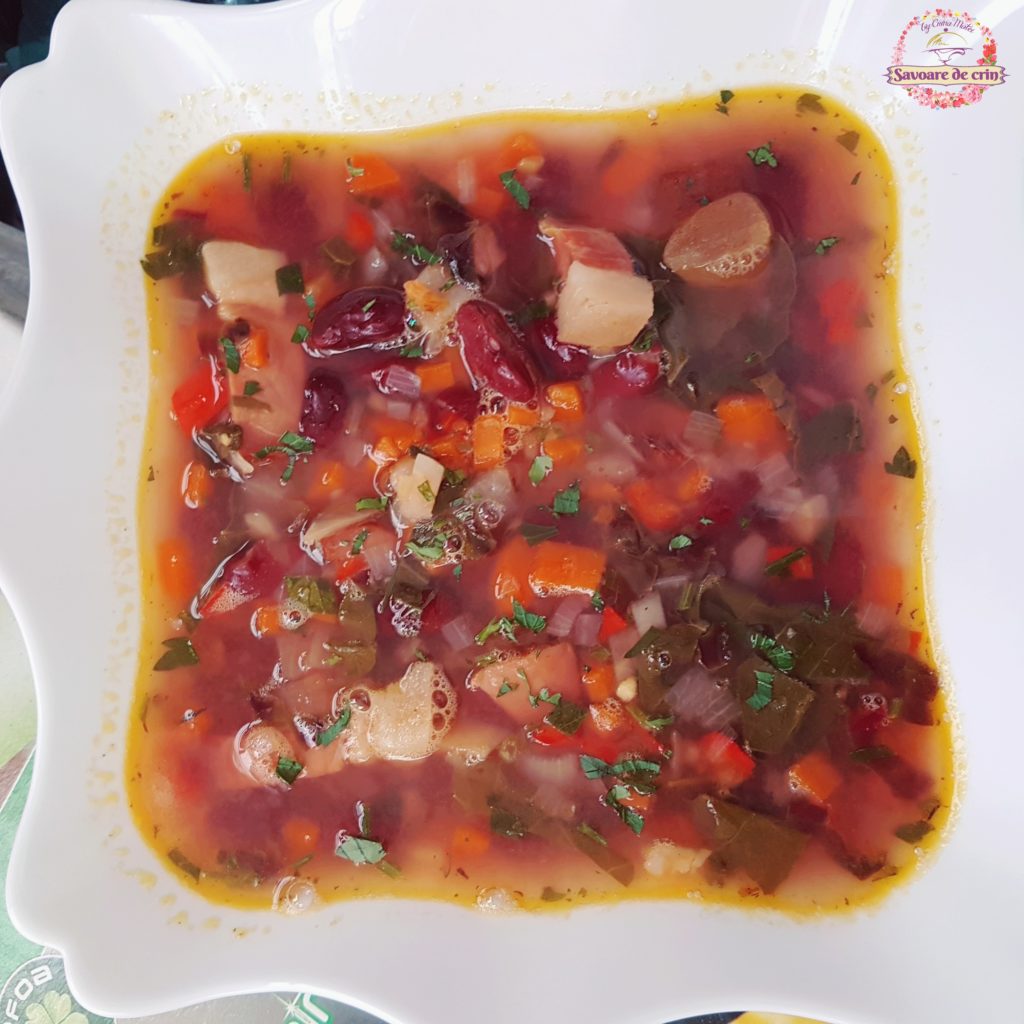 Ciorbă rapidă cu ștevie,lobodă roșie și fasole roșie boabe
