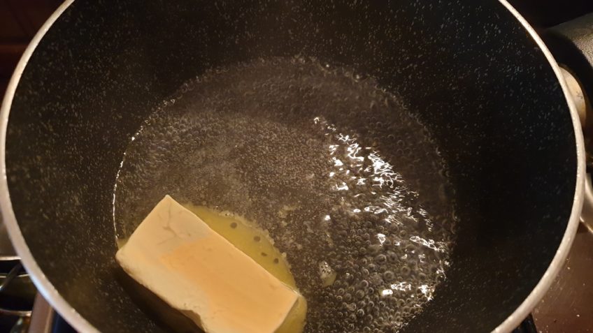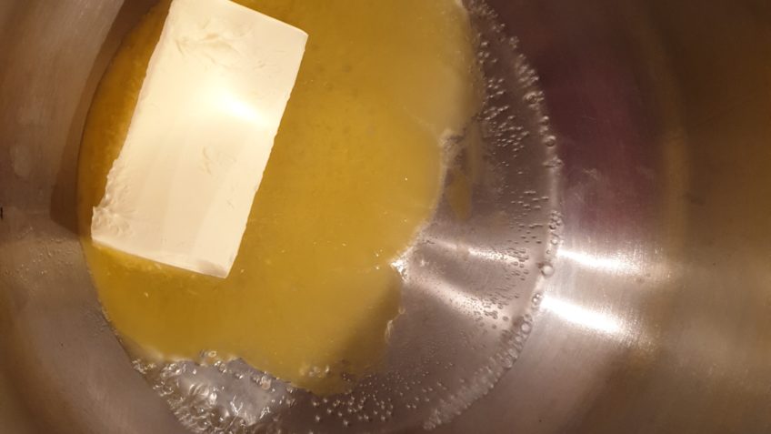 Punem intr-o cratiță apa cu untul pe foc si amestecăm ușor până la topirea untului. Imaginea 4
